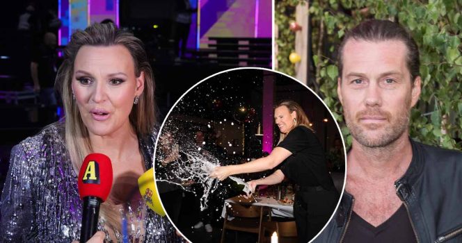 Sanna Nielsen fick fira utan kärleken Joakim Ramsell på efterfesten.